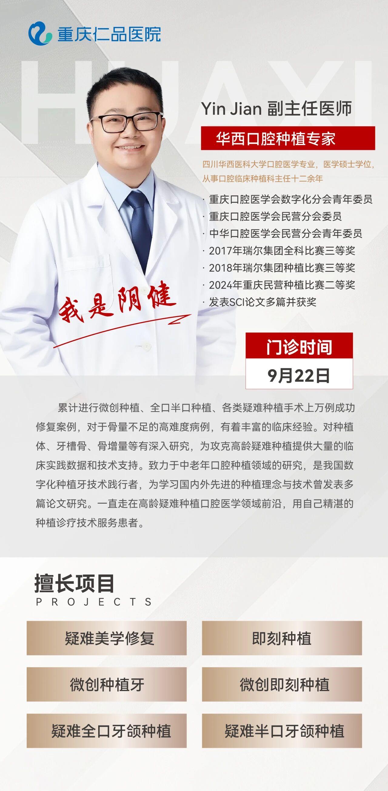 重磅!华西口腔种植专家阴健正式加盟重庆仁品口腔