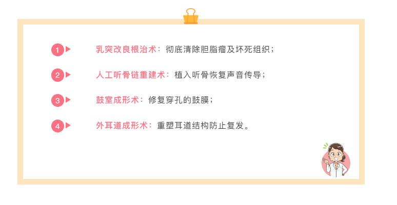 明确诊断后,张主任针对其病情进行了全面评估——患者的胆脂瘤已经对中耳结构造成了一定破坏,保守治疗效果不佳,为彻底清除病灶,同时尽可能恢复听力,张主任制定了个性化的手术方案:
